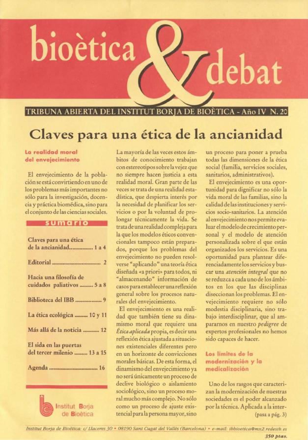 Moratalla, A. Domingo. «Claves para una ética de la ancianidad». Bioètica & debat: tribuna abierta del Institut Borja de Bioètica, 2000, vol.VOL 6, n.º 20, pp. 1-4, https://raco.cat/index.php/BioeticaDebat_es/article/view/260265.